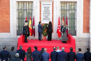 La presidenta de la Comunidad de Madrid, Isabel Díaz Ayuso, y el alcalde de Madrid, José Luis Martínez-Almeida, han depositado hoy una corona de laurel ante la...