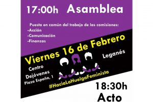 Reunión de las mujeres y los colectivos feministas que organizan la huelga del 8 de marzo en Leganés Este viernes 16 de febrero, se reúnen en el centro De...