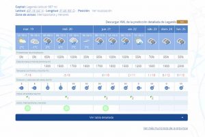 Pronóstico de lluvia al 100% para mañana en Leganés pero la AEMET no añade riesgo a la precipitación
