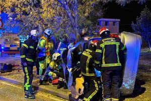 El vehículo ha chocado con dos árboles quedando semivolcado. Los tres ocupantes, dos varones y una mujer, han sido trasladados al Hospital 12 de Octubre...