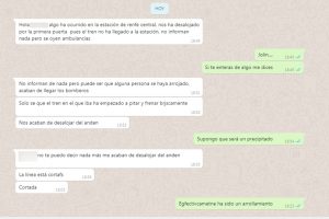 Una persona contaba en directo lo ocurrido a un amigo a través de wasapp 18.49. “Hola. Algo ha ocurrido en la estación de RENFE de Leganés Central, nos...