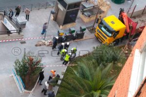 La farola se cayó a la altura del número 3 de la calle Panadés en la puerta de la Galería Pryconsa en Zarzaquemada Los técnicos que reparaban aseguraron que...