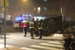A cientos de metros de la chica atropellada hace dos semanas, nuevo y aparatoso golpe En el coche volcado se produjeron tres heridos, un matrimonio y su bebé...
