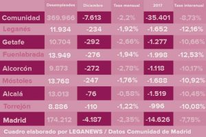 Nuestra ciudad ofrece la segunda mejor tasa de recuperación (-12,16%) de empleo de toda la Comunidad de Madrid por detrás de Fuenlabrada (-12,53%) Alcorcón (9...