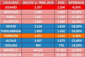 Solo Torrejón da un cifra peor (-5,30%) pero con menos de la mitad del número de infracciones penales Sin embargo bajan los homicidios (uno a...