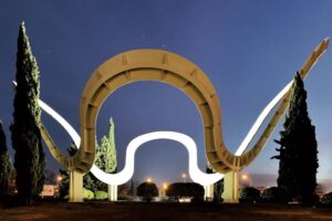 Se han realizado trabajos de limpieza y pintura sobre la estructura que se eleva sobre la glorieta situada en el acceso a Leganés desde la M-425 (Leganés...