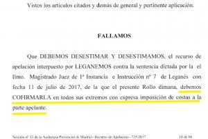 La Audiencia Provincial de Madrid ha confirmado la sentencia dictada por el Juzgado nº 7 de Leganés favorable a las tres concejalas y al concejal expulsados de...