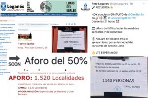 La cuenta de Twitter asegura que es un 50% (760) mientras en la puerta hay un cartel que habla de aforo máximo, en la pandemia, de 1.140 Los 1.140 es el 75%...