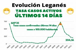 34 casos menos confirmados (388) en las dos últimas semanas que hace siete días Cuatro áreas básicas de salud están por debajo de 200 casos por cada 100 mil...