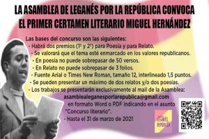 Los premiados recibirán un diploma acreditativo, un lote de libros y la publicación del poema seleccionado en la página de la asamblea La Asamblea de Leganés...