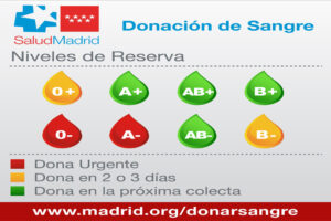 Los grupos de sangre de 0+ y AB- se encuentran en alerta amarilla mientras que el B+ y el AB- están en verde La Consejería de Sanidad de la Comunidad de Madrid...