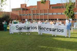 La zona anexa a la entrada de Urgencias del Hospital Severo Ochoa ha vivido en la tarde de hoy una concentración bajo el lema ‘Sanitarios...