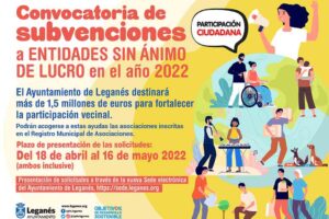 El Ayuntamiento de Leganés ha informado que la concejalía de Participación Ciudadana ha puesto en marcha la convocatoria de subvenciones a asociaciones y...