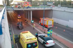 Al parecer el conductor, un varón de 32 años, se habría dormido y terminó en la carretera que cruza por debajo Un vehículo se ha sufrido esta mañana un...