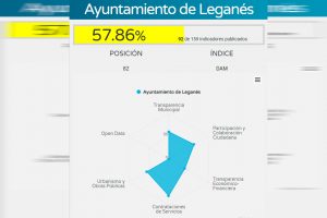 0% en indicadores de Open Data, pero tiene una puntuación muy alta en lo relativo a Contrataciones de Servicios, alcanzando un 80% El Ayuntamiento de Leganés...