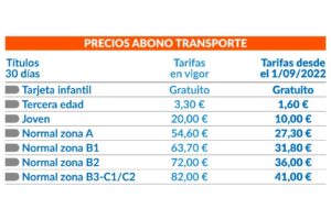 Desde hoy, el abono mensual pasa a tener un coste de 6,30 euros y el anual, de 63 euros El abono será totalmente gratuito para este colectivo al término de la...