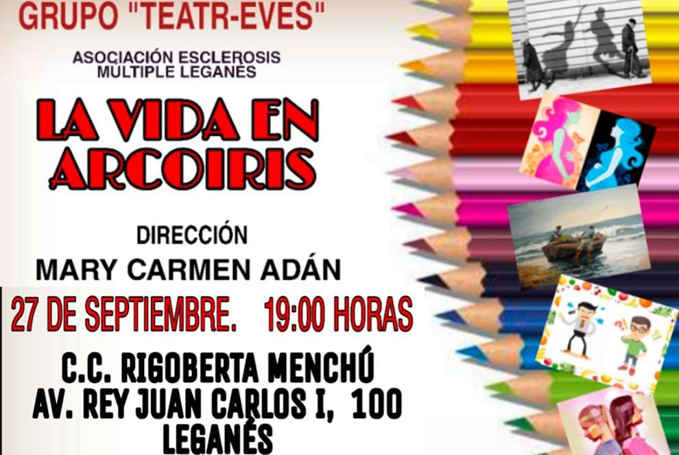 Bajo la dirección de Mary Carmen Adán el grupo ‘Teatr-Eves’ de la Asociación Esclerosis Múltiple Leganés presenta la obra ‘La vida en arcoíris’. Esta función teatral está enmarcada en las actividades de la Asociación y al mismo tiempo representa una forma de dar a conocer nuestra entidad a los vecinos de Leganés.