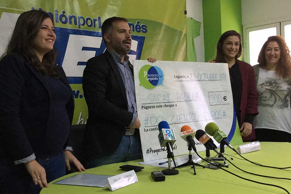 El presidente de Unión por Leganés, Carlos Delgado, acompañado de dos ediles de su grupo, ha hecho entrega de un talón por valor de 200 euros a la judoka leganense Saray Padilla. La deportista local, seis veces campeona de España con tres podium más, con 23 años y semejante palmarés carece de patrocinio empresarial o institucional. Este gesto se enmarca dentro de la parte deportiva del llamado ‘Proyecto Leganés’.