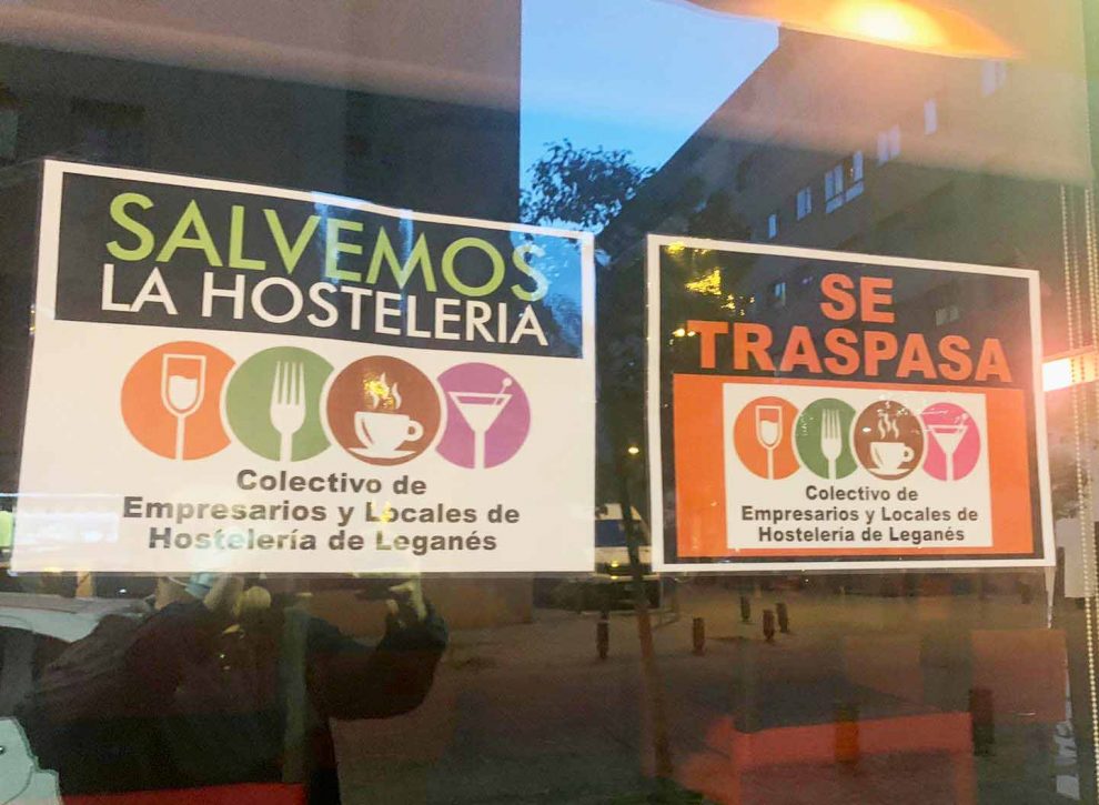 Durante estos días muchos de los bares y pubs de Leganés se han encontrado con carteles puestos en sus vidrieras con los mensajes ‘Salvemos la hostelería’ y ‘Se traspasa’. Esta campaña ha sido llevada acabo por parte de un grupo de hosteleros de Leganés que de manera independiente a cualquier asociación han tomado las riendas para intentar proteger sus negocios. Además han hecho un vídeo, que se ha difundido a través de RRSS, haciendo un llamamiento a la unidad, “todo volverá a ser como antes. Volveréis a disfrutar de las tapas y de la música de nuestros bares y pubs.”